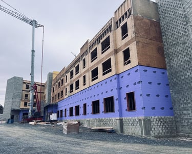 800 South Queen Street has reached four stories, with all floors complete and the building nearly under roof as final roofing and stair towers are finished. Crews are progressing on utilities, stair installations, and upper-floor core drilling while parapet walls go up. Window installation begins next week, fully enclosing the building and pushing interior work forward.