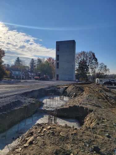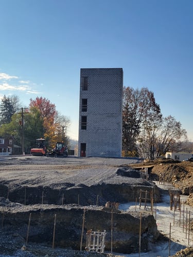 OZFund’s 800 South Queen Street project continues to move forward to bring the new multi-family facility to life in Lancaster City. The on-site construction team is currently building stair tower B, which should be completed just in time for the new year. While stair tower B is underway, the underground plumbing work is moving forward. After the stair tower is finished, the underground work adjacent to the stair tower will be completed to make the site ready for the concrete slab to be poured.