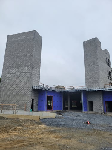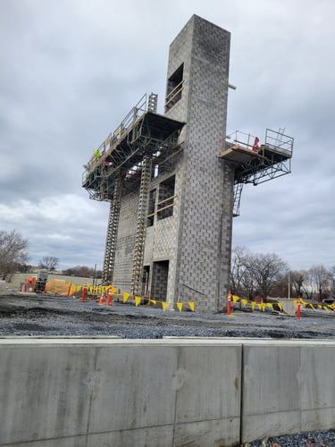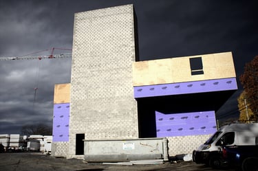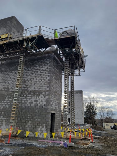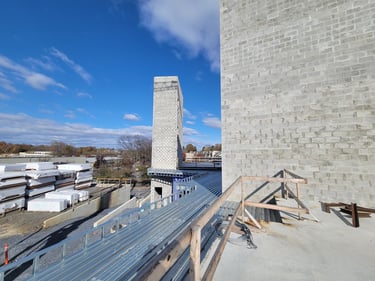 At a progress update in November 2024, the construction team reports that the two stair towers that will be located at each end of the finished building are in place. Additionally, the elevator shaft that will be at the center of the building is finished. Work on the last stair tower that will be adjacent to the elevator shaft will be completed over the next two weeks.