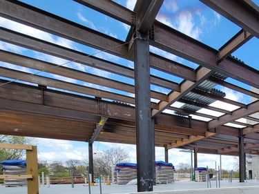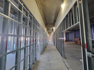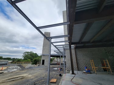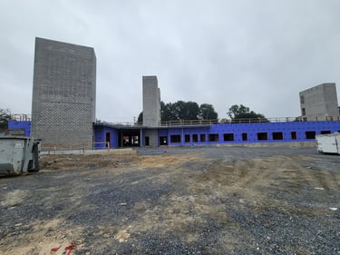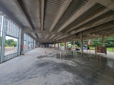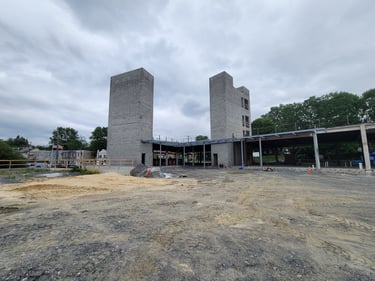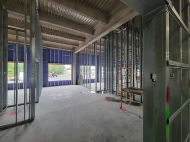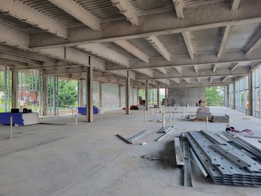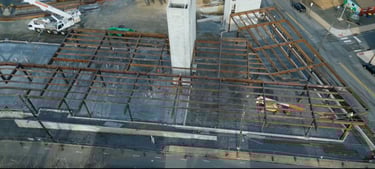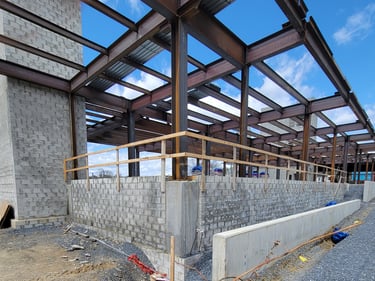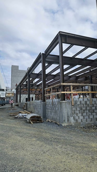 The structural steel is currently being placed and will continue over the next few weeks. This initial stage includes preparing the foundation by ensuring accurate placement of anchor bolts for properly securing the structural frame to the foundation. Then the primary frame, which includes columns and beams, is placed to form the spine of the building. Alignment checks are made throughout this complex process to guarantee that structural integrity is maintained as the upper portions of the structure are added.