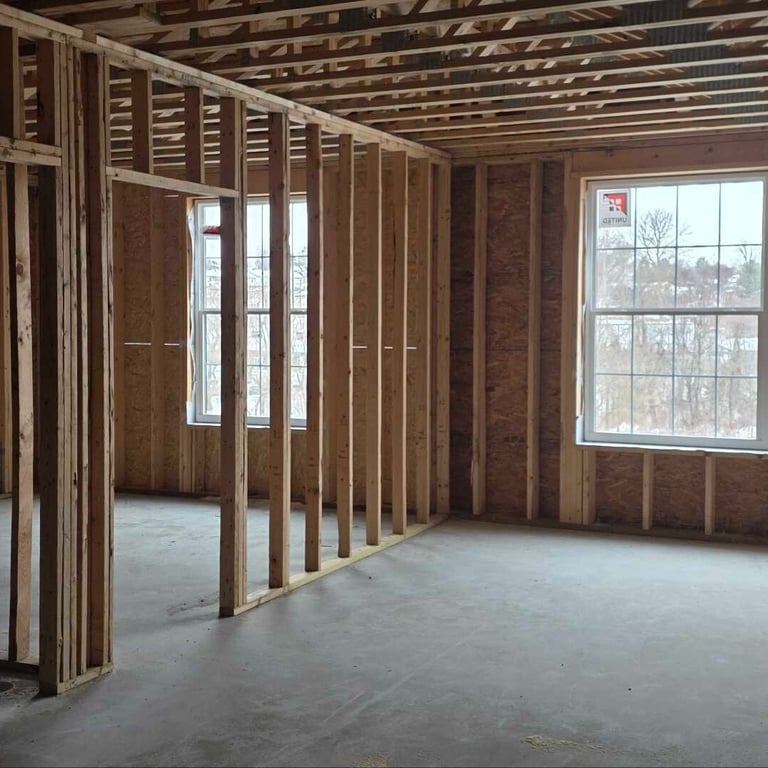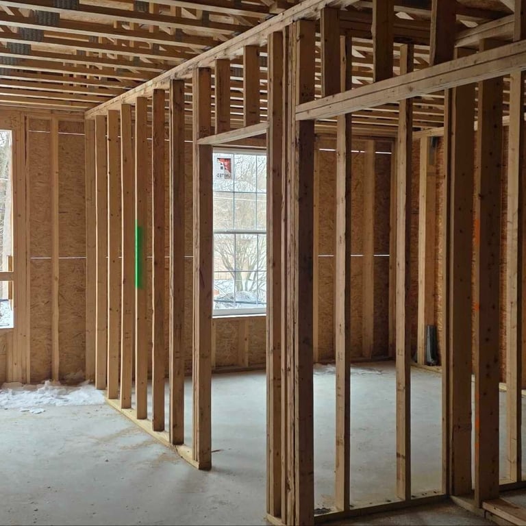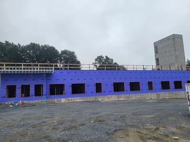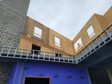 The exterior sheathing is 90% complete and the windows will be coming on site next to finish enclosing that space. On-site teams are simultaneously working on the interior spaces of the first-floor to streamline the construction progress. Plumbing rough-ins are complete and scheduled for inspection this week. Additionally, the interior framing is 85% complete, so the first-floor layout is established according to the architectural plans.