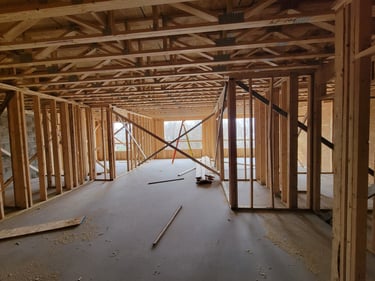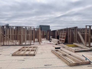 Exterior framing for the first floor is at 50% and sheathing will start later this week to begin the process of enclosing the first-floor space. Additionally, teams are working on the layout of the interior walls for the first floor. This process involves consultation with the design drawings to confirm proper placement of the interior framing structures to ensure the intended floorplan is created.