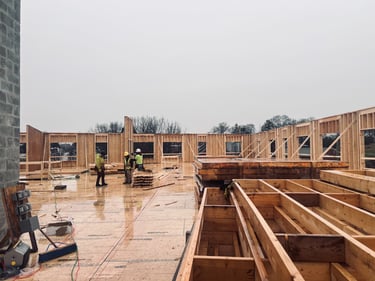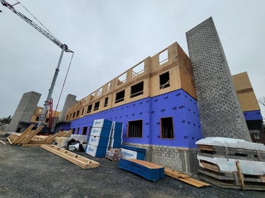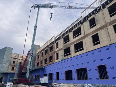 🚀Vertical construction is continuing at this new 52-unit multi-family residential and mixed-use building with the 2nd floor trusses and 3rd floor subfloor now complete. The on-site team is working on placement of the exterior walls and simultaneously framing the interior walls on the 3rd floor.